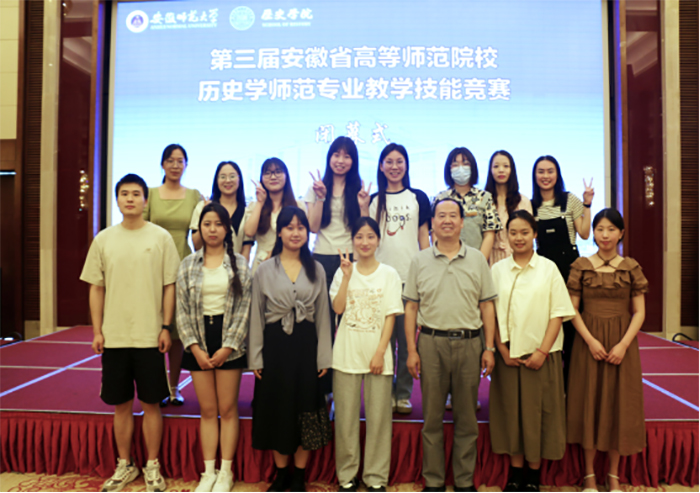 6月2日-4日,由安徽省历史学会、安徽师范大学历史学院主办的“第三届安徽省高等师范院校历史学师范专业教学技能竞赛”在安徽芜湖举行。经过学院多轮选拔,共派出6名历史学(师范)本科生及8名学科教学(历史)研究生参加了此次比赛。